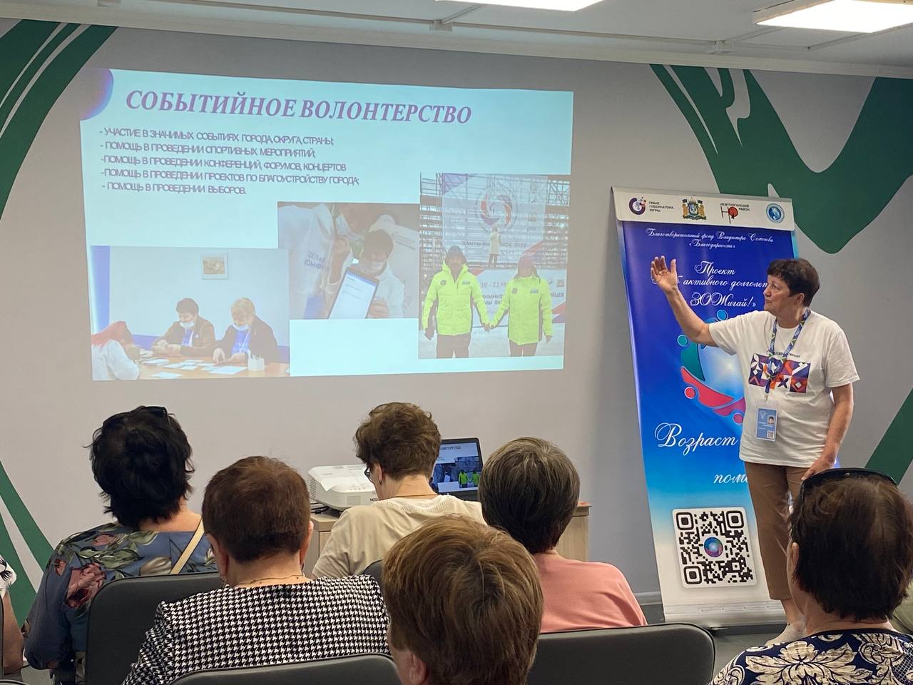 Администрация города благодарит Урасинову Любовь Александровну за бесценный опыт добровольческой деятельности «серебряных» волонтеров Сургута, представленный ею на данной встрече, а также волонтеров Нефтеюганского района, посетивших наш город!