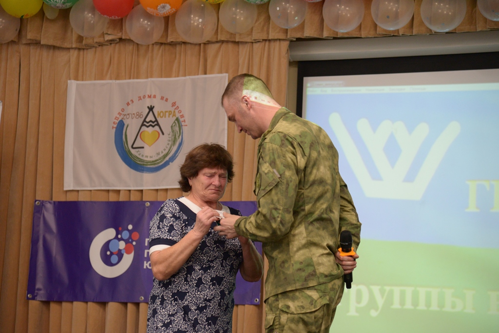 Военнослужащий Управления Росгвардии по ХМАО – Югре майор Дмитрий Нагребельный от имени начальника тероргана полковника полиции Евгения Симакова вручил более 150 благодарственных писем и медалей "За доблесть в труде в период спецоперации" и "За помощь фронту" жителям сёл Батово, Белогорье и города Ханты-Мансийска – волонтёрам группы «ZOV 86 Югра. Тепло из дома на фронт».