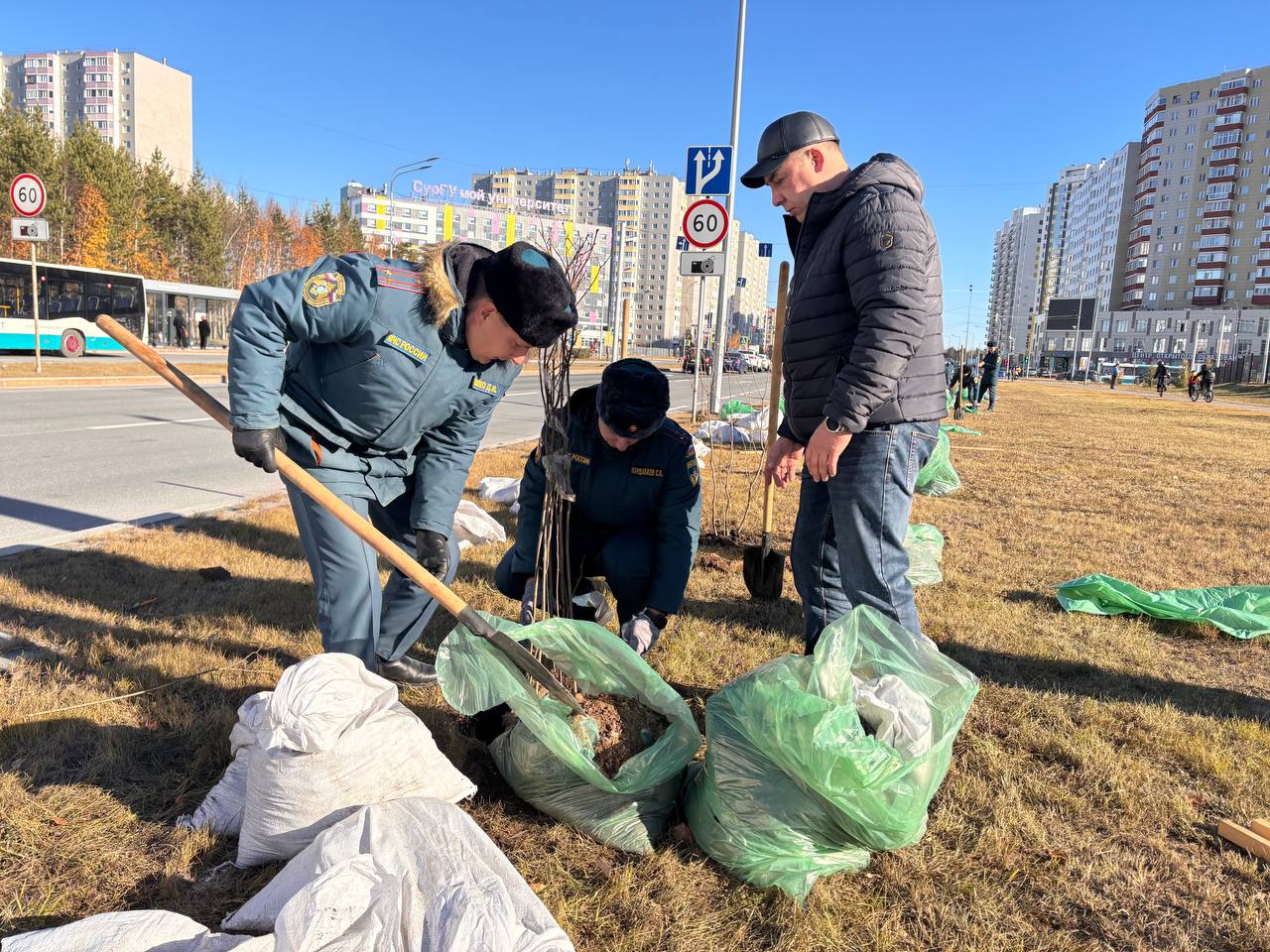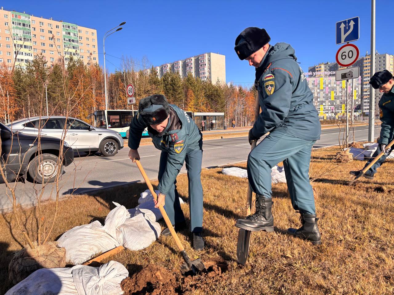 Сотрудники подразделений МЧС, дислоцирующихся в Сургуте, приняли участие в озеленении города.