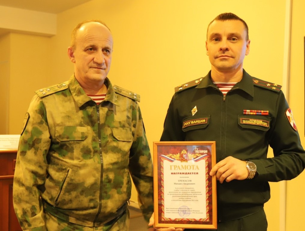 Торжественность моменту придало вручение ведомственных наград. Заместитель командующего Уральским округом войск национальной гвардии Российской Федерации по военно-политической работе полковник Лом Али Дааев вручил военнослужащим и сотрудникам тероргана медаль «За проявленную доблесть» III степени, погоны к очередным специальным званиям и благодарности.