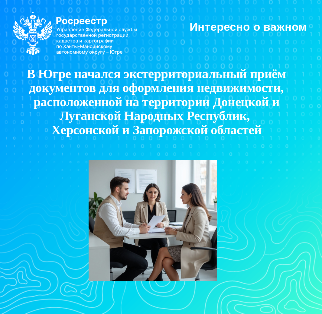В Югре начался экстерриториальный приём документов для оформления недвижимости, расположенной на территории Донецкой и Луганской Народных Республик, Херсонской и Запорожской областей