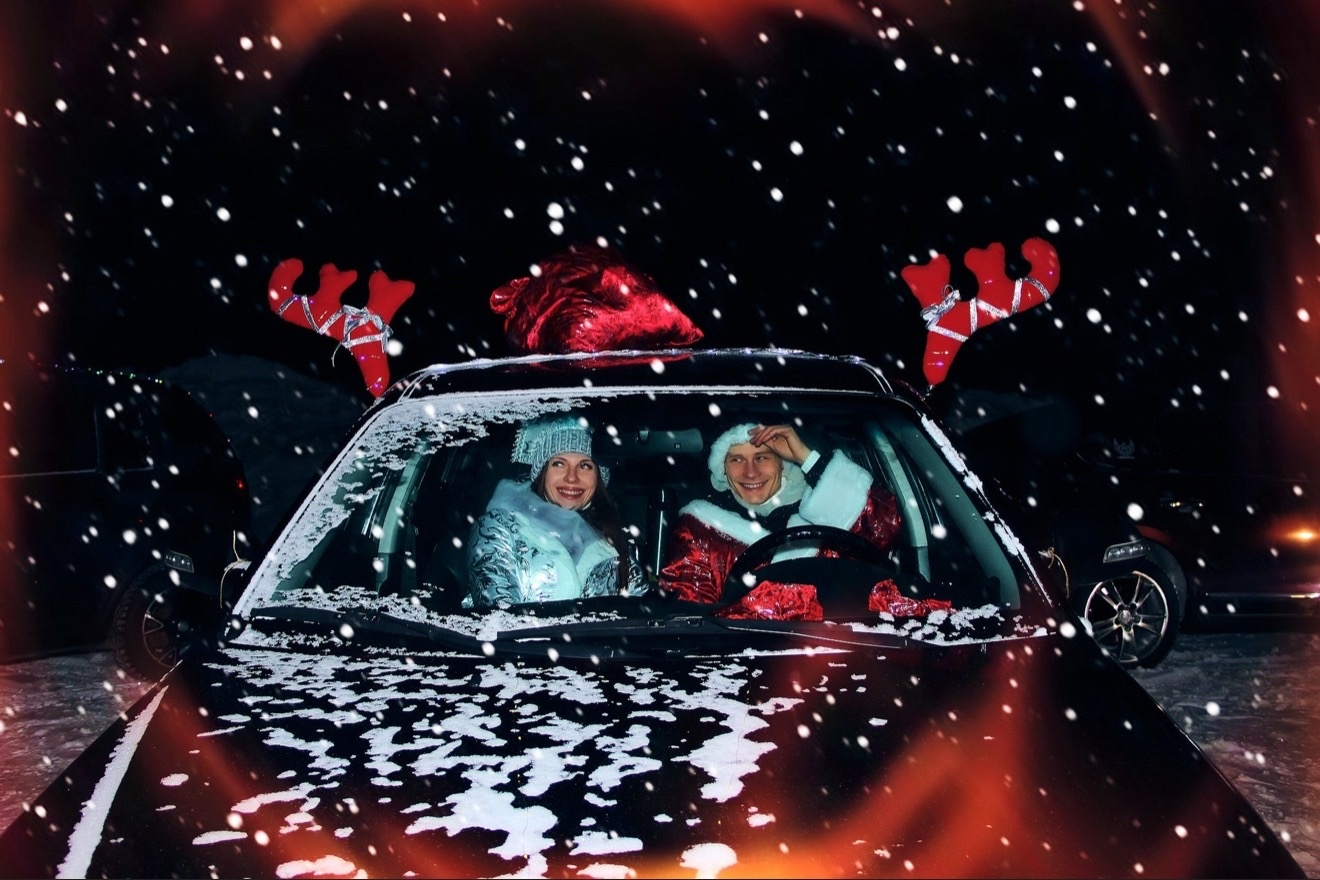 Сургутяне креативно поздравили город с наступающим Новым годом. Люди нарядили авто в гирлянды, а некоторые с удовольствием примерили наряды Снегурочки и Деда Мороза. С помощью техники образовали гигантскую сияющую фигуру ели.