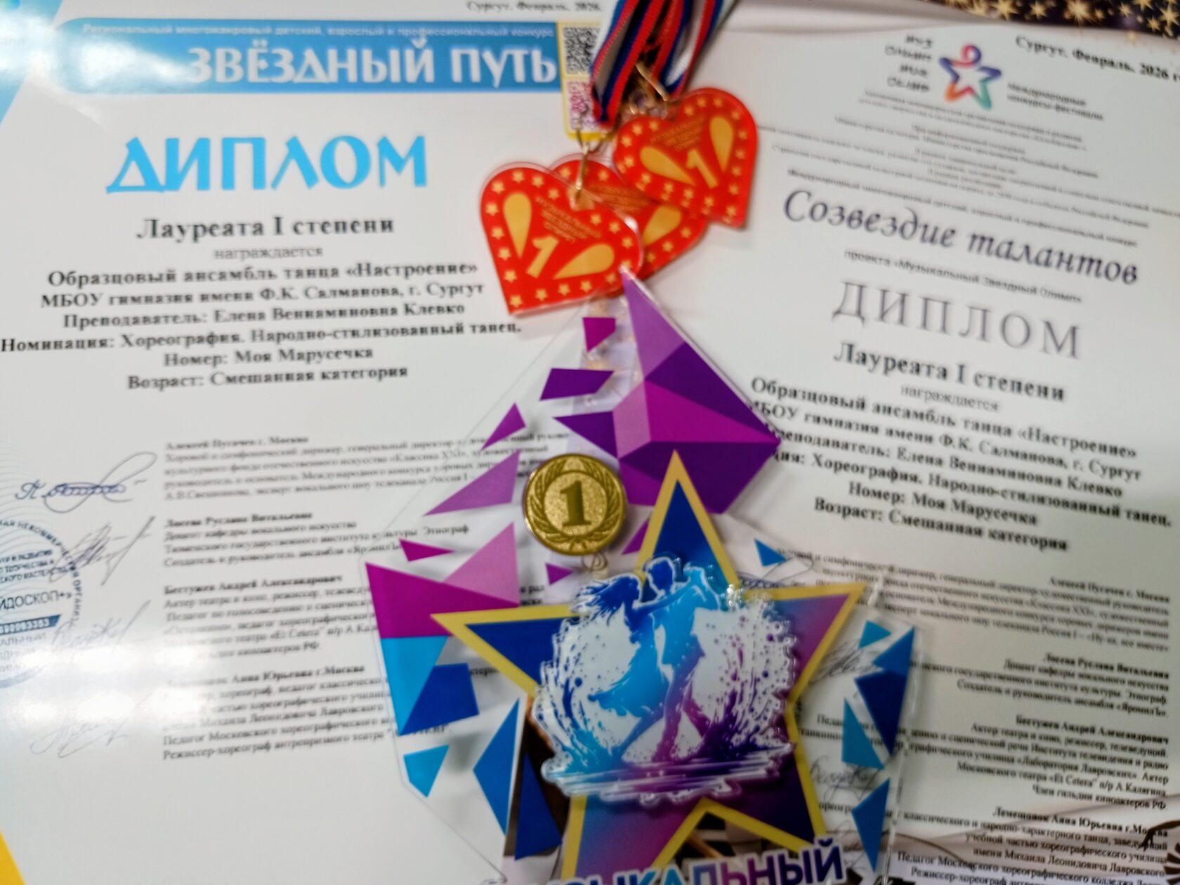 Дипломом I степени жюри оценило номер «Пластинка» в номинации «Эстрадный танец» в исполнении средней группы ансамбля: Беспоместных Евгении, Комиссаровой Елены, Кузнецовой Софьи, Многиной Дарьи, Мухасиповой Алины, Можаевой Виктории, Олюшкина Семёна, Поварчук Арины, Чайкиной Екатерины, Чумаковой Анны, Шадюк Виктории.