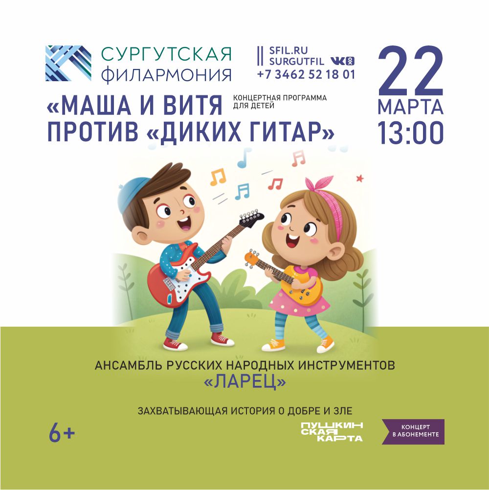 22 марта, 13:00 Концертная программа для детей «Маша и Витя против «Диких гитар»