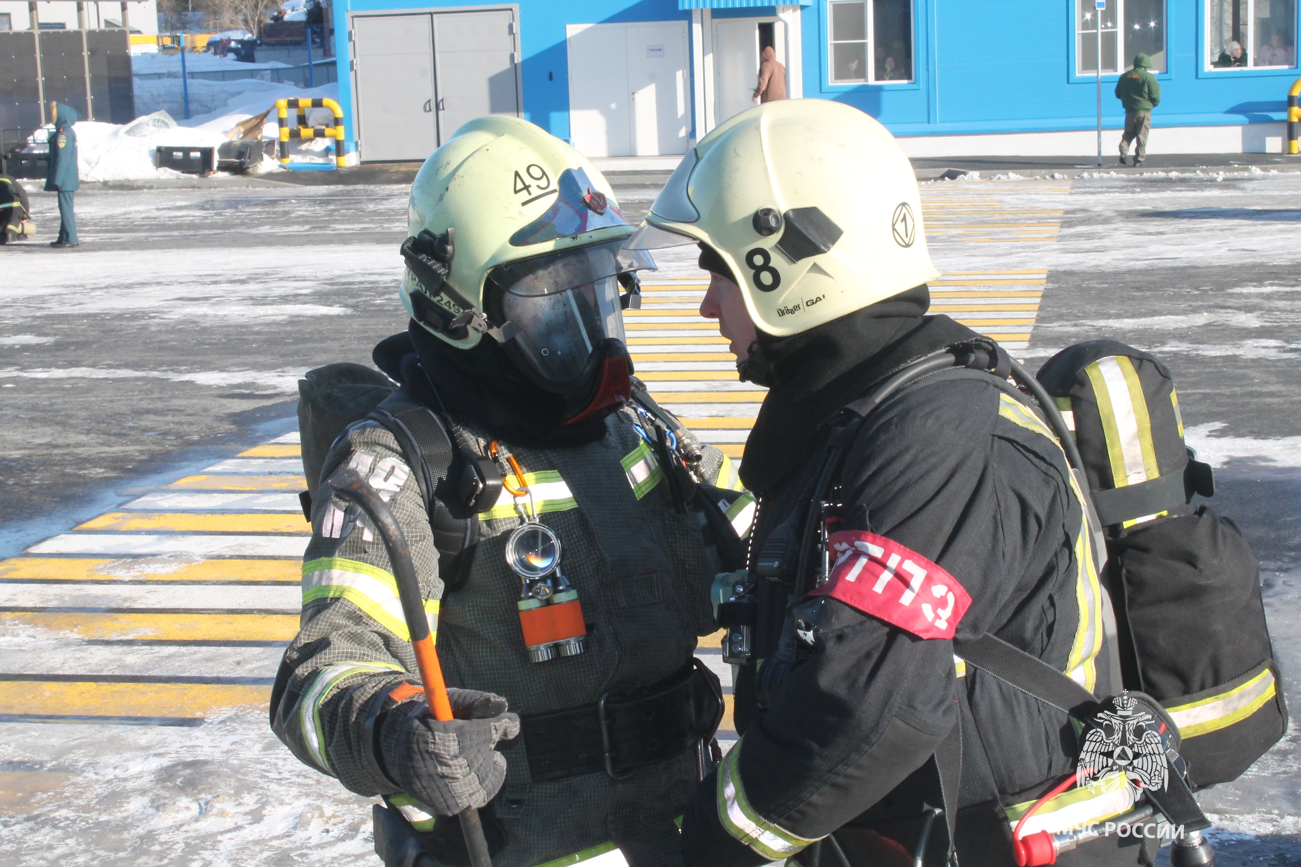 Первыми к месту условного пожара прибыли отделения 49 пожарно-спасательной части, 1 пожарно-спасательного отряда в районе выезда которой, находится данный объект. На подъезде пожарных встретил представитель администрации, доложивший, что все работники и посетители эвакуированы, однако четыре человека остаются в здании и не могут выйти самостоятельно. Оценив обстановку, пожарные определили решающее направление — поиск и спасение людей. Звенья газодымозащитной службы незамедлительно приступили к боевым действиям. В кратчайшие сроки условные пострадавшие были обнаружены и эвакуированы в безопасную зону. Для координации сил и средств на месте условного пожара был создан оперативный штаб пожаротушения.
