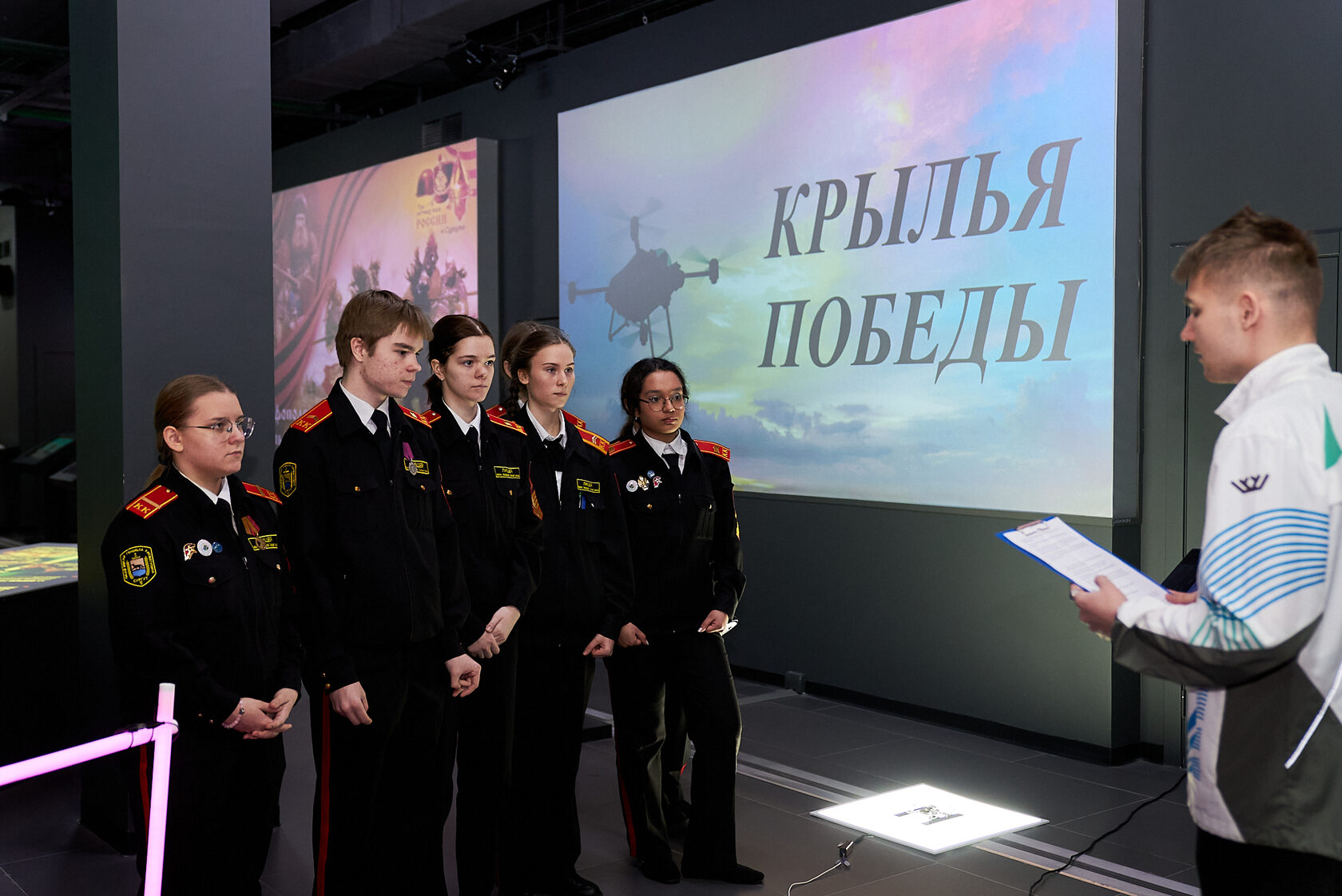 Сами задания на станциях требовали от ребят самых разных качеств. Где-то нужно было проявить эрудицию и знание исторических фактов, где-то – умение работать с образами и символами эпохи, где-то – быстро ориентироваться в военной тематике, узнавать образцы вооружения, соотносить события, имена и достижения. Отдельные испытания обращали внимание школьников на то, что победа в любом сражении зависит не только от храбрости солдата и таланта полководца, но и от врачей, инженеров, ученых, конструкторов, разведчиков, шифровальщиков – всех тех, кто приближал общий результат своим трудом, знаниями и служением Отечеству.