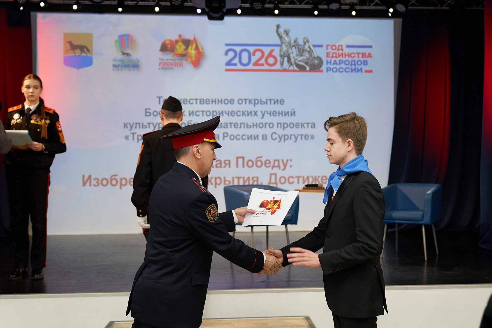 На торжественном открытии выступили генеральный директор АНО «Центр патриотических проектов “Моя история”» А. Н. Никитин и протоиерей, благочинный Сургутского городского благочиния отец Антоний Исаков. Их участие подчеркнуло, что разговор об истории сегодня невозможен без разговора о ценностях, о духовной опоре народа, о преемственности поколений и о том, как историческая память формирует гражданскую позицию молодых людей.
