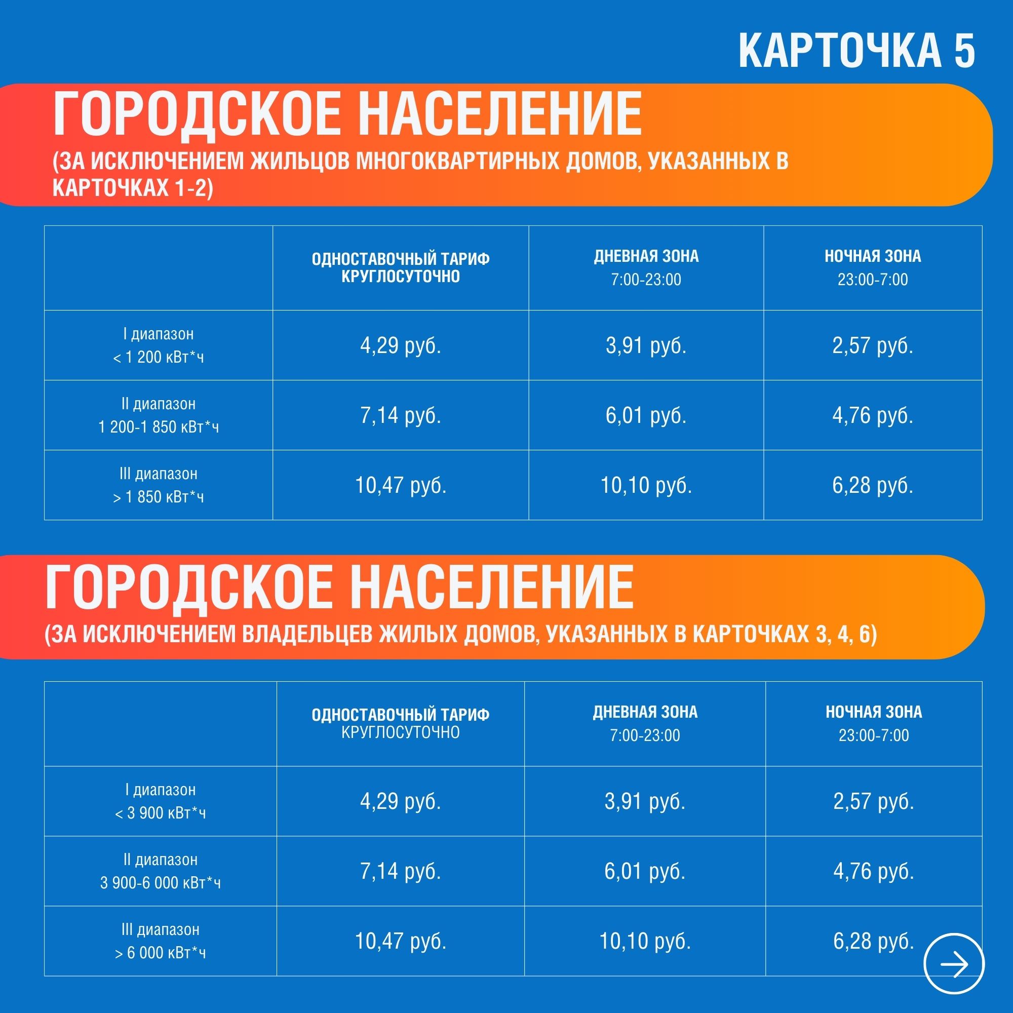 Для удобства граждан энергетики также разработали карточки с распределением по тарифным группам населения и приравненных к нему категорий потребителей по ХМАО-Югре, ЯНАО и Тюменской области.