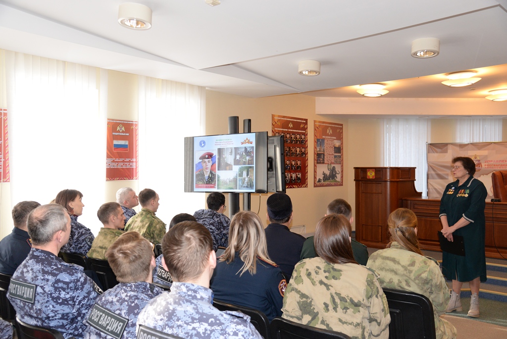 В ходе визита были подведены итоги проводимой работы по военно-патриотическому воспитанию подрастающего поколения, работе с семьями погибших защитников Отечества в различных военных конфликтах и специальной военной операции. Под патронажем территориального управления Росгвардии находится 30 таких семей, большинство награждены посмертно Орденом Мужества.