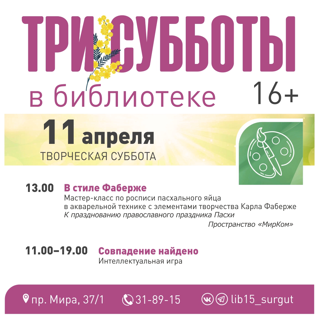 11.00-12.00, 13.00-14.00 – игровая площадка «Весна-Красна, ты нам Пасху принесла!» (центральная площадь);