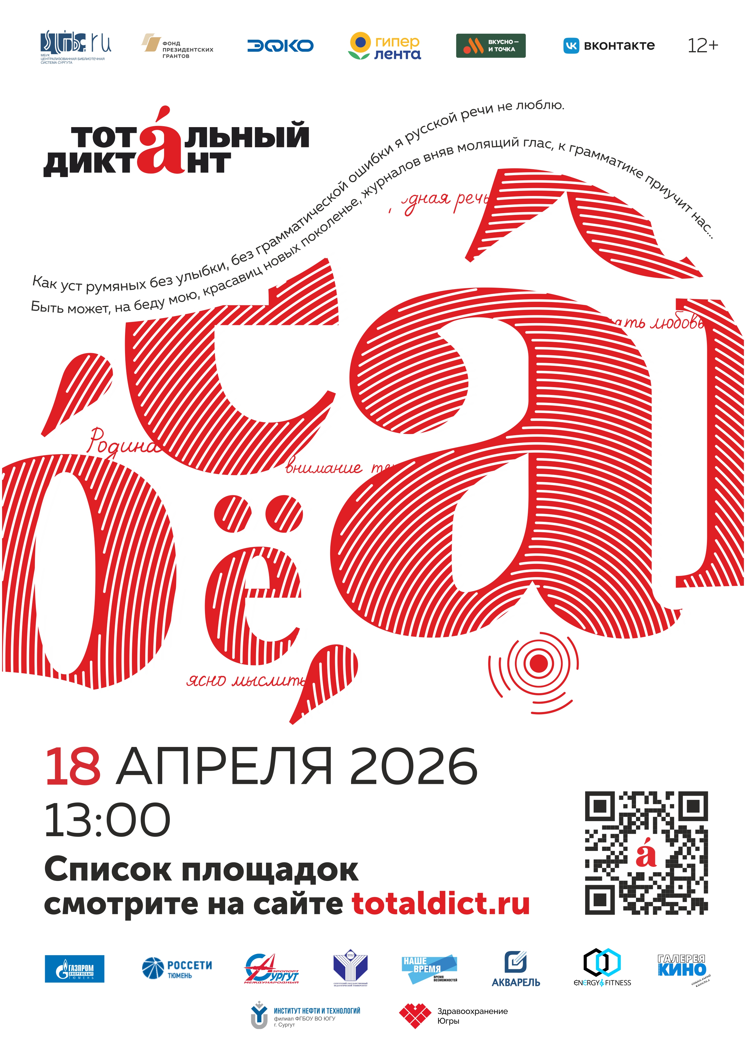 18 апреля в 13.00 Сургут присоединится к международной просветительской акции «Тотальный диктант».
