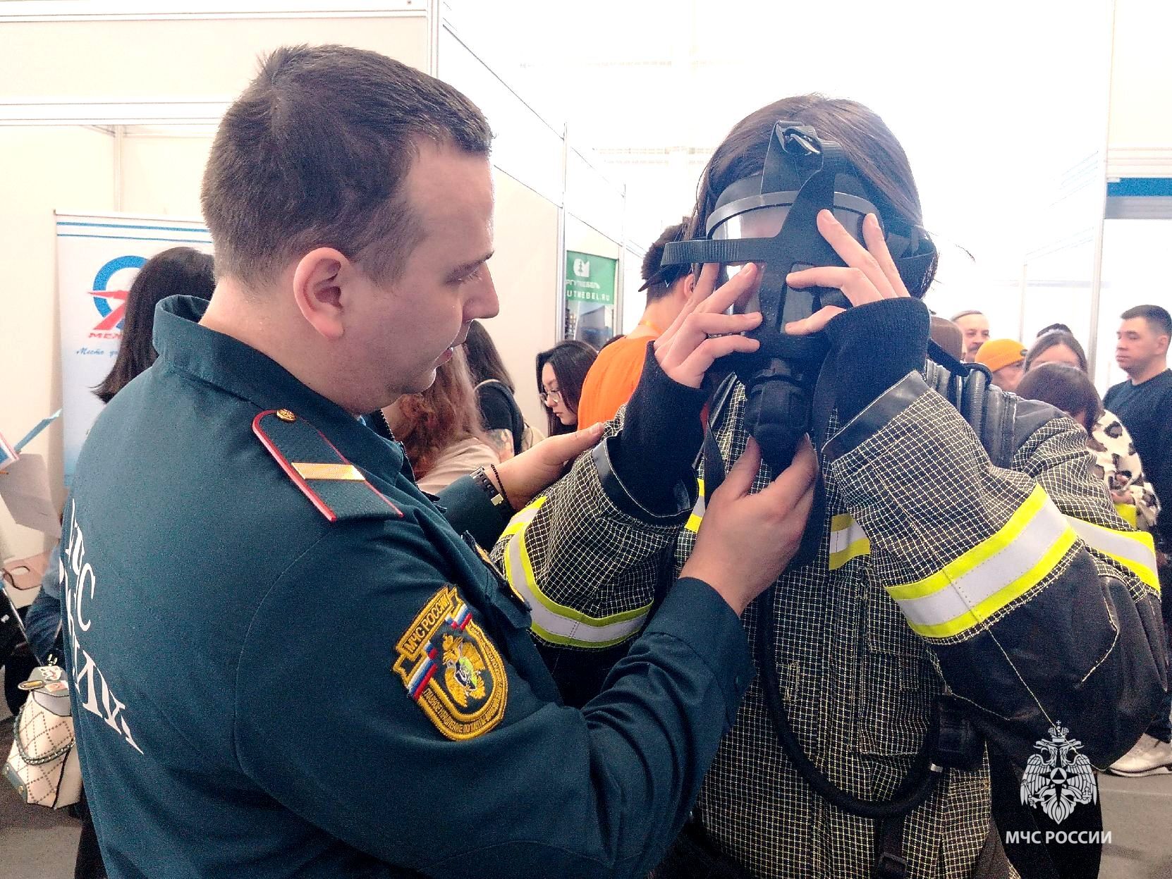 Интерактивная часть мероприятия вызвала живой интерес у всех гостей. И взрослые, и дети с удовольствием пробовали дышать через кислородную маску и примерили на себя боевую одежду пожарного.