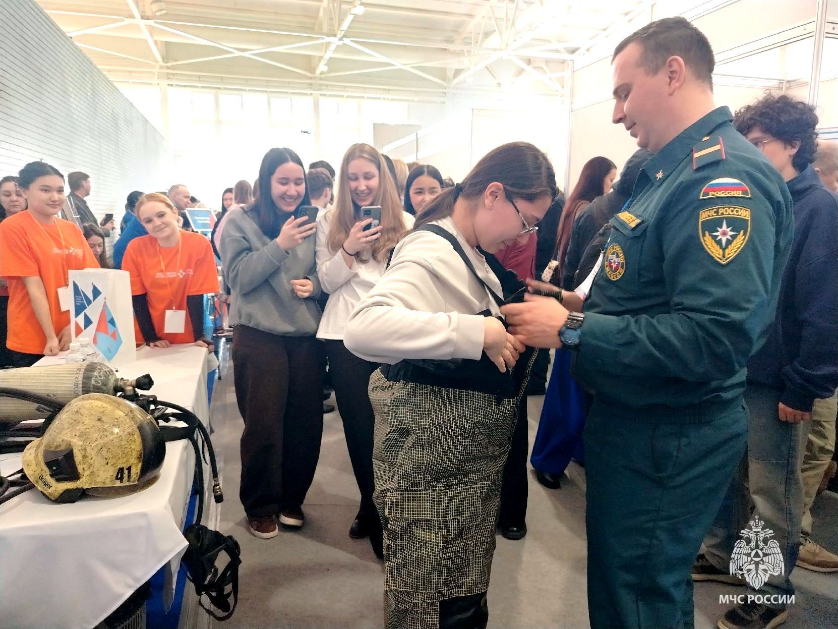 Особое внимание на ярмарке привлекла презентация профессии пожарного. Её с гордостью представили сотрудники 1-го пожарно‑спасательного отряда. Специалисты подробно рассказали о престижности работы в системе МЧС России и порядок обучения в высших учебных заведениях. Школьники задавали самые разнообразные вопросы: сколько весит снаряжение? За какое время нужно одеться? Есть ли среди пожарных женщины? С какими сложностями приходится сталкиваться в работе?