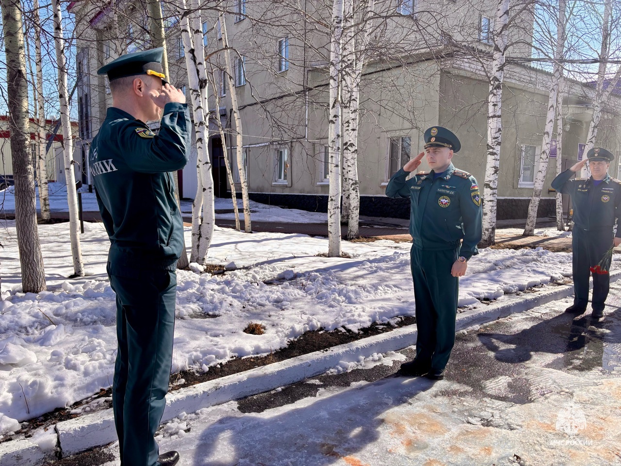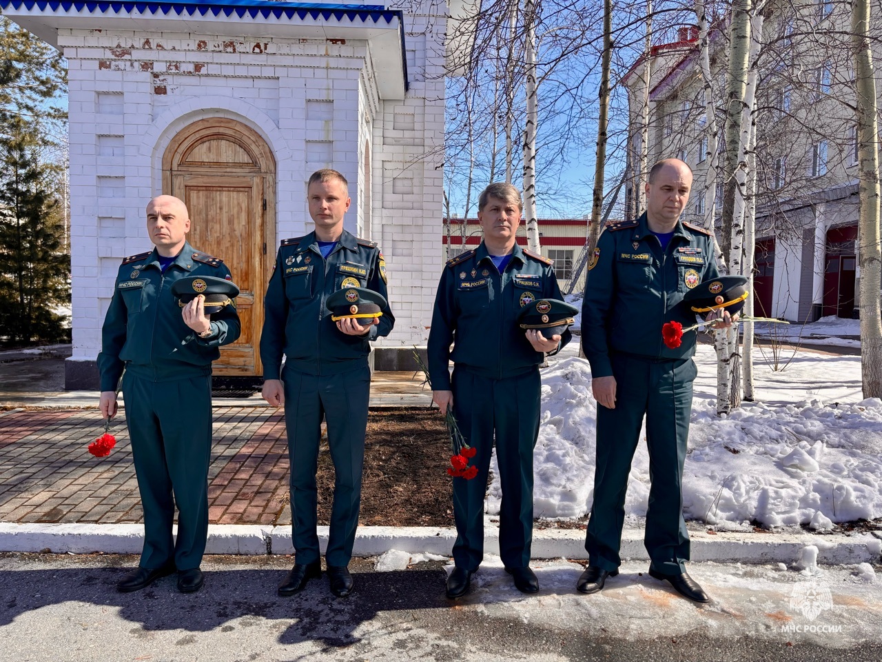 В городе Сургуте сотрудники МЧС России также собрались на митинг, почтили память погибших сослуживцев минутой молчания и возложили цветы к Памятному мемориалу, установленному в честь пожарных и спасателей, погибших при исполнении служебного долга.