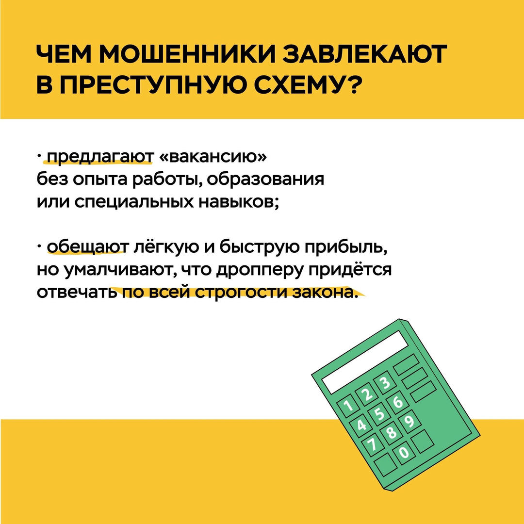 Мошенники стараются не светить свои банковские счета и запутать следы. Для этого они используют дропперов — посредников, которые получают деньги от жертвы обмана. Дроппер и сам может не знать, что он — соучастник. Что самое ужасное, дропперами часто становятся подростки. Как вместо заработка не нажить серьезных проблем — смотрите в карточках/
