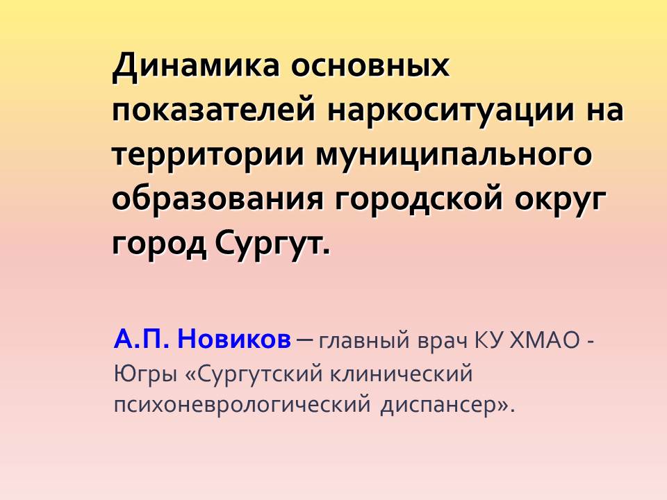 Несмотря на устойчивое снижение общей распространенности наркомании среди населения г.Сургута данный показатель остается более высоким, чем по Российской Федерации в среднем (232,5 на 100 тыс. населения) и Уральском Федеральном округе (268,5 на 100 тыс. населения) данные по итогам 2013 года.