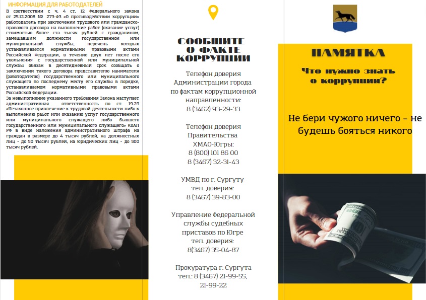 Памятка "Сообщите о факте коррупции"