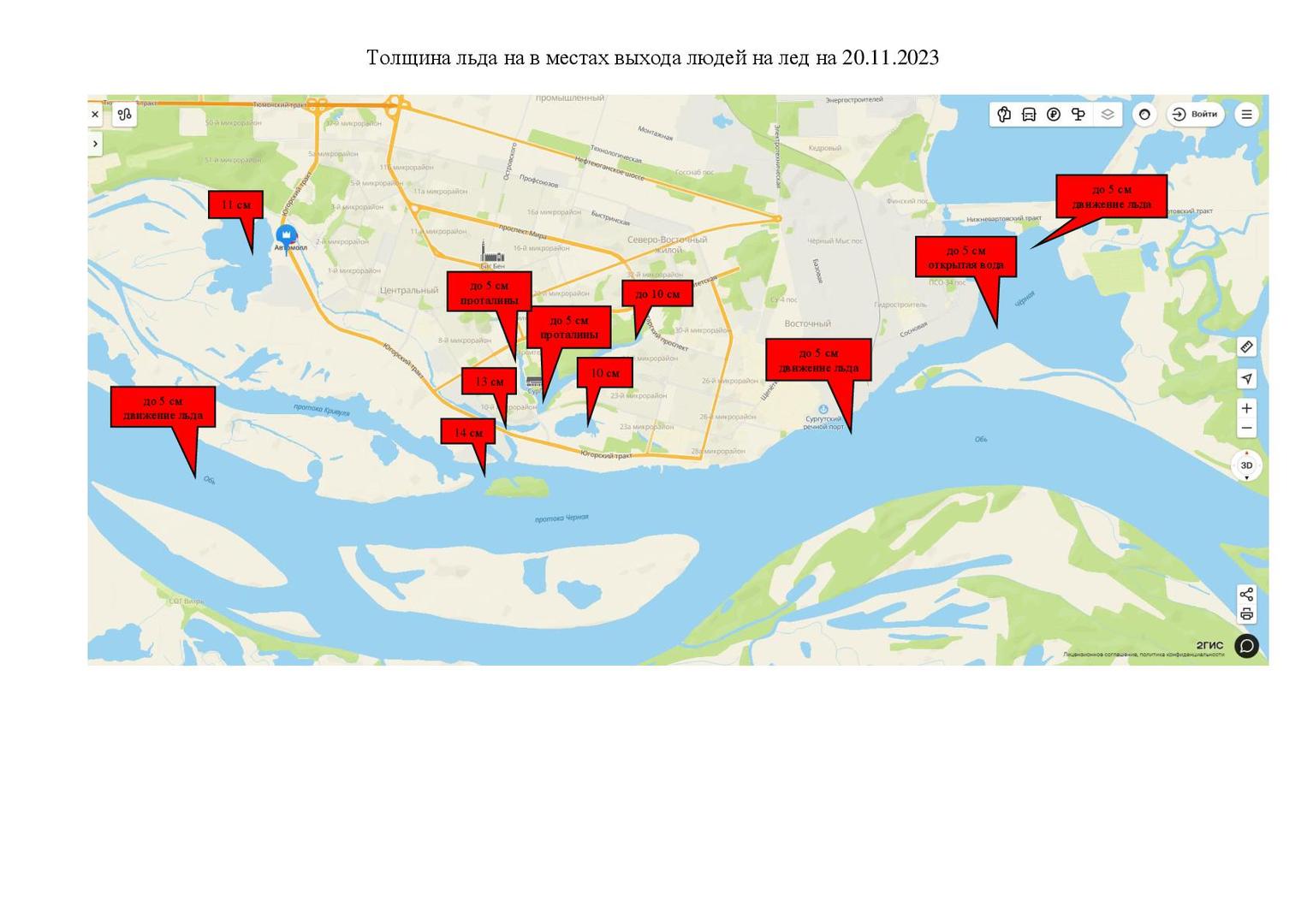 На водоемах города продолжается период ледостава, который закончится в декабре. В этот период существует наибольшая опасность происшествий, обусловленных выходом людей и выездом техники на неокрепший лед. Ежегодно в течение всего зимнего периода отмечаются участки открытой воды (промоины, полыньи).