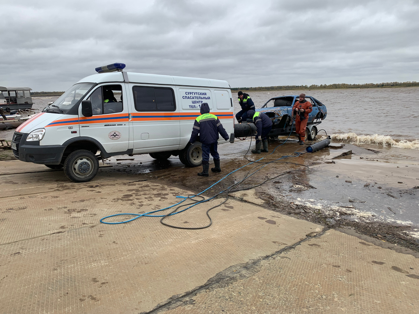25 сентября МКУ «Сургутский спасательный центр» проведено учебно-тренировочное занятие на реке Обь по теме: «Действия личного состава при проведении водолазных работ по извлечению затонувшего транспорта». В ходе занятия спасатели достали постарадавшего из затонувшего транспортного средства и с применением специальной техники и оборудования извлекли затонувший транспорт из воды.
