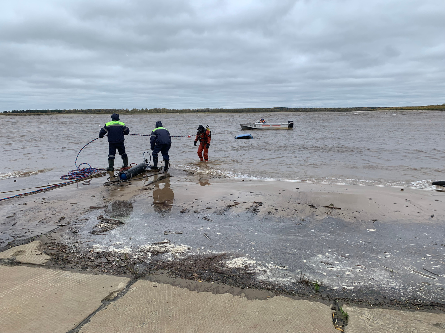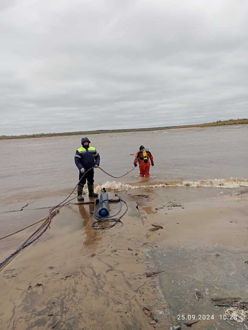 Проведено учебно-тренировочное занятие на реке Обь по теме: «Действия личного состава при проведении водолазных работ по извлечению затонувшего транспорта»