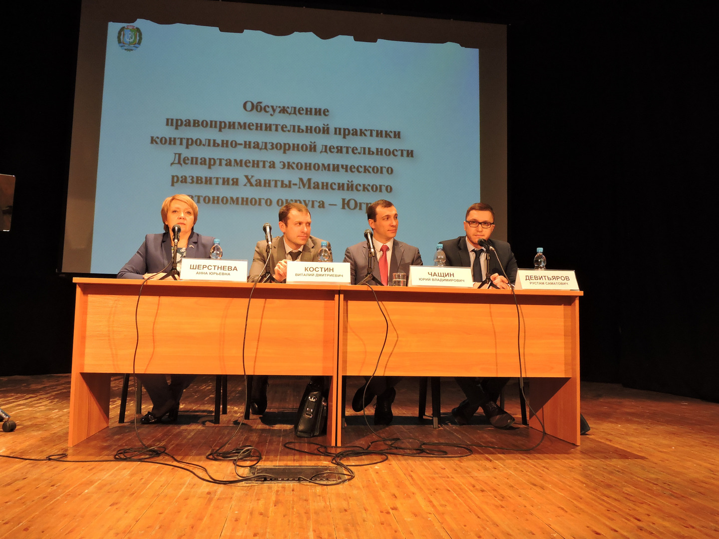 В рамках визита, на площадке Сургутской филармонии, было проведено публичное мероприятие по вопросам правоприменительной практики в контрольно-надзорной деятельности в сфере производства и оборота этилового спирта, алкогольной и спиртосодержащей продукции.