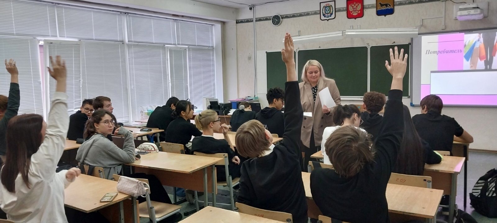 11 октября, в рамках мероприятий, направленных на повышение потребительской грамотности учащихся, проведены тематические уроки по основами законодательства о защите прав потребителей, в том числе практическим аспектам его применения, для учеников 9 Б и 9 Д классов МБОУ СОШ № 26.