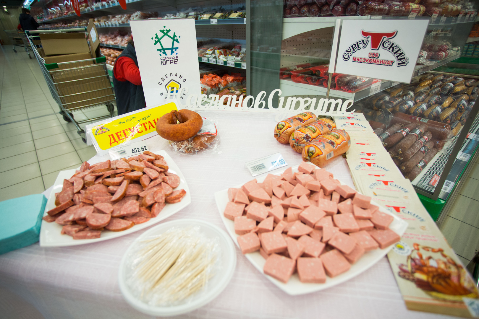 Одно их таких дегустационных мероприятий состоялось 19.04.2019 с 15.00 до 19.00 часов на торговой площадке гипермаркета «ОКЕЙ» в торгово-развлекательном центе «Сургут Сити Молл», расположенном по адресу: г. Сургут, ул. Югорский тракт, д. 38, где была продукции СГМУП «Сургутский хлебозавод», ООО Мясокомбинат «Сургутский» и ООО Пивоваренный завод «Сургутский» - обладателей товарного знака «Сделано в Югре!» и логотипа «Сделано в Сургуте».