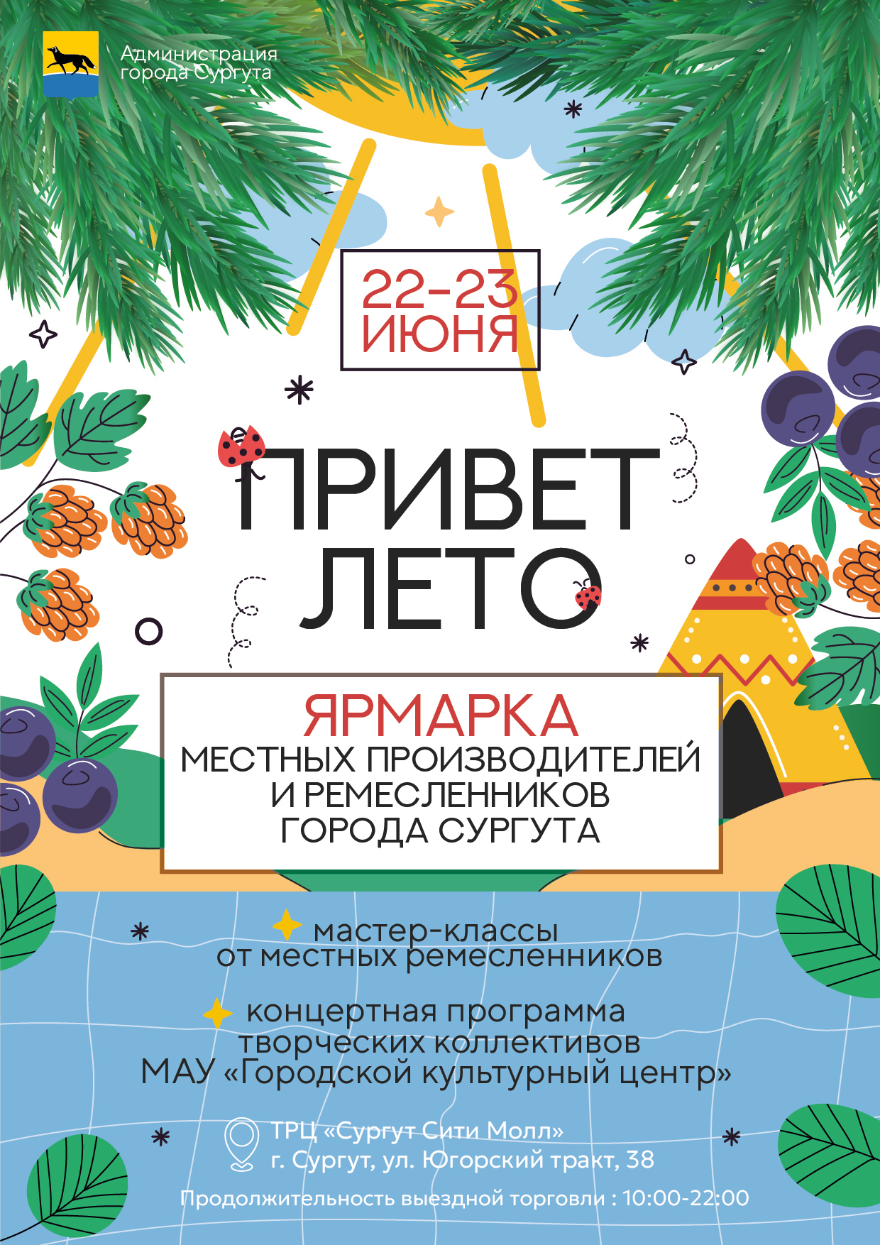 22-23 июня 2024 года на площадке ТРЦ «Сургут Сити Молл» ТРЦ «Сургут Сити Молл» прошла выездная торговля с участием местных товаропроизводителей, мастеров и ремесленников города Сургута.