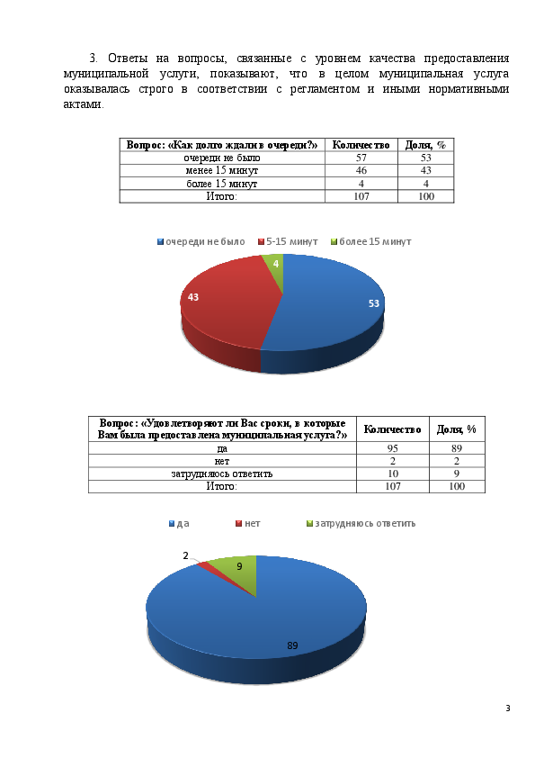 - Ответы на вопросы, связанные с уровнем качества предоставления муниципальной услуги, показывают, что в целом муниципальная услуга оказывалась строго в соответствии с регламентом и иными нормативными актами.