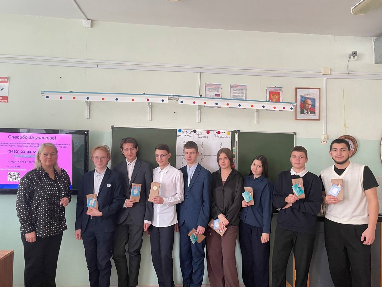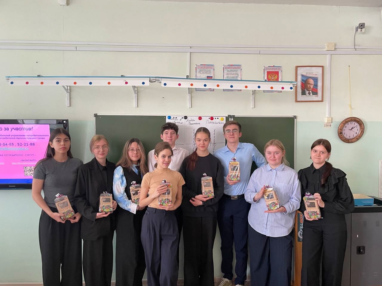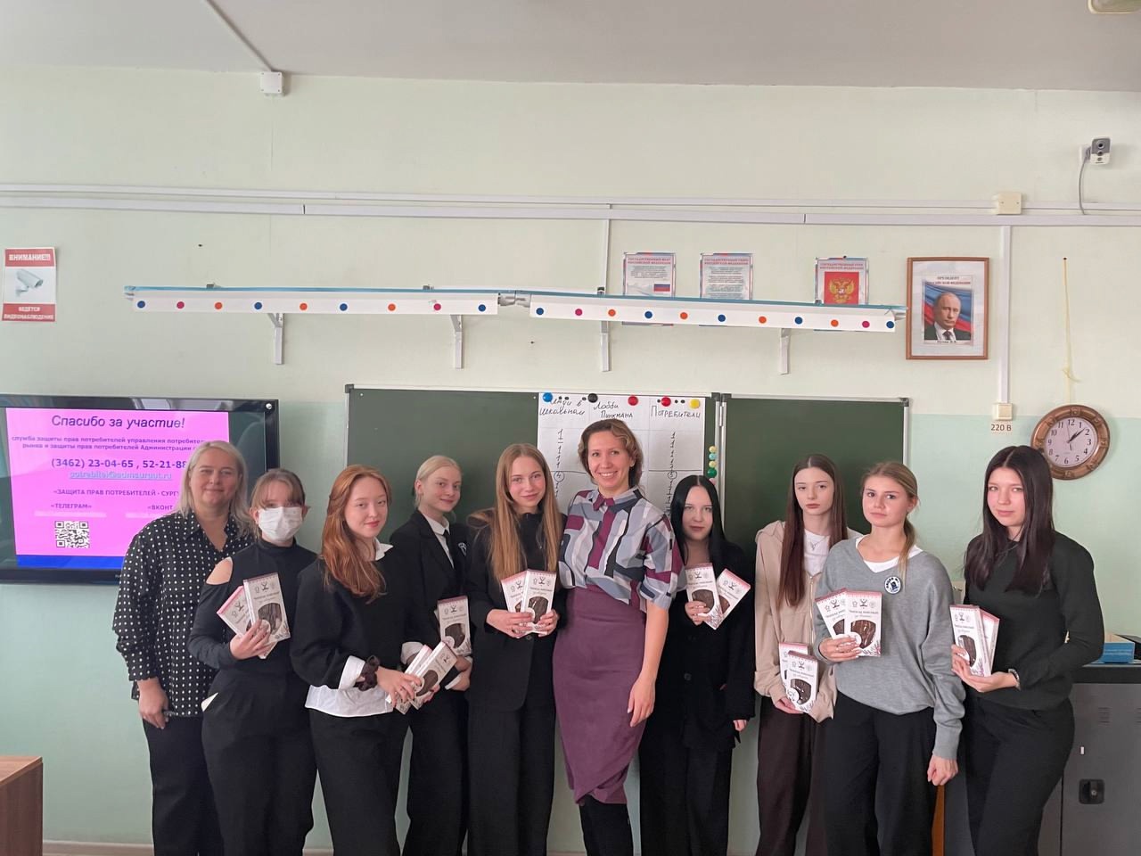 26 ноября - тематическая викторина «Грамотный потребитель» с десятиклассниками сургутского лицея № 1. Партнерами викторины стали активные предприниматели города, сформировавшие призовой фонд для школьников: