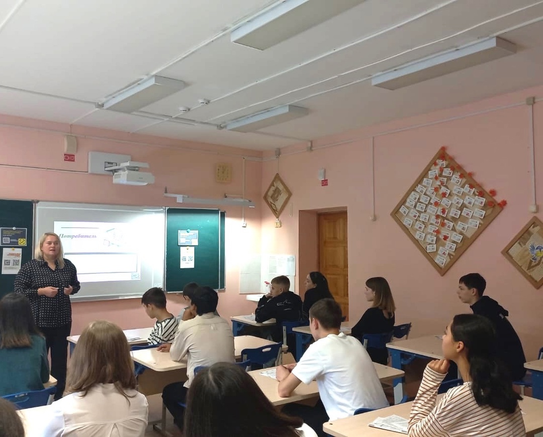 30 сентября для учеников 8 «А» класса МБОУ СОШ №3 проведен тематический урок по основам потребительских знаний.