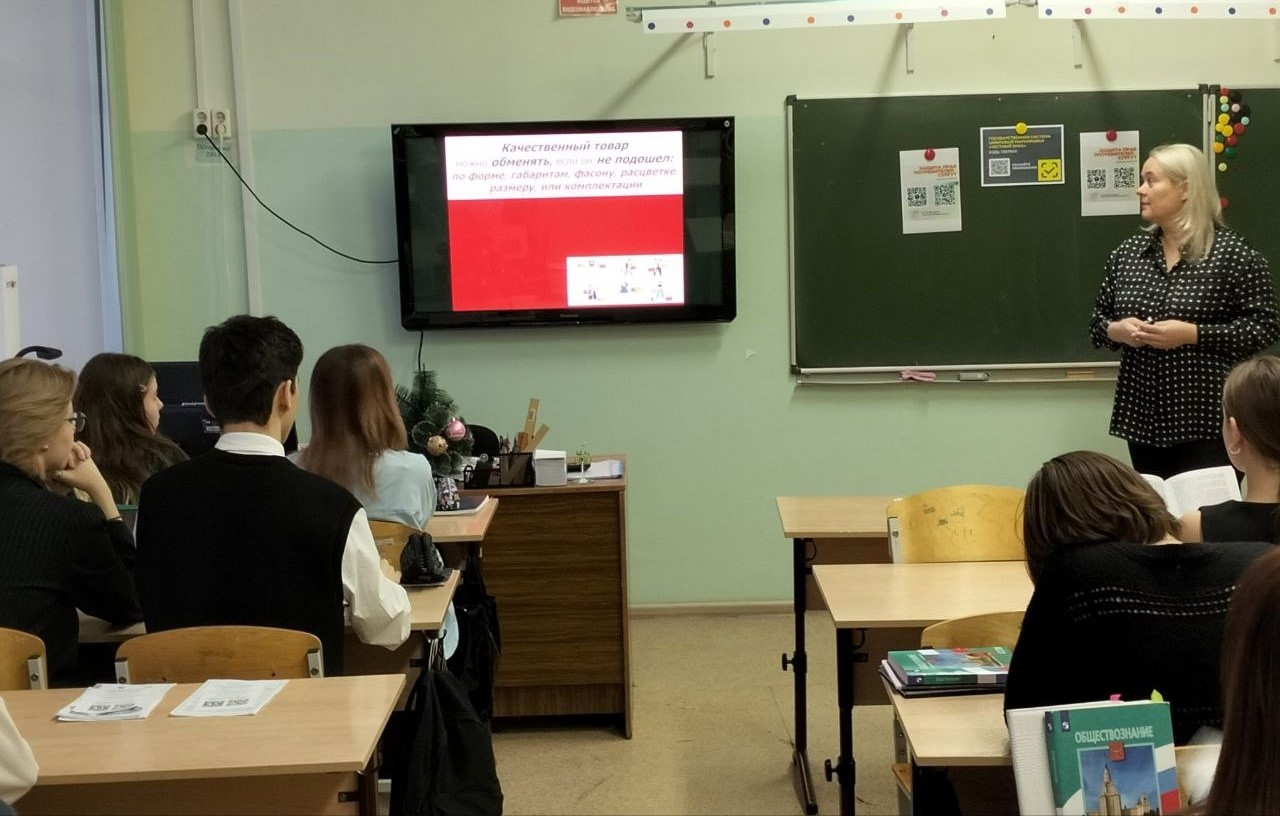 Занятия проходили в формате диалога, школьники познакомились с основными положениями законодательства о защите прав потребителей, подробно разобрались в особенностях возврата и обмена качественного и некачественного товара, на примерах из практики рассмотрели актуальные жизненные ситуации, которые наглядно демонстрируют порядок действий потребителя.