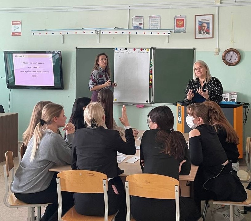 26 ноября специалисты управления потребительского рынка и защиты прав потребителей провели тематическую викторину "Грамотный потребитель" с десятиклассниками МБОУ лицей № 1, ставшую заключительным мероприятием в рамках запланированных и посвященных Всемирной неделе качества под девизом «Россия – страна со знаком качества»