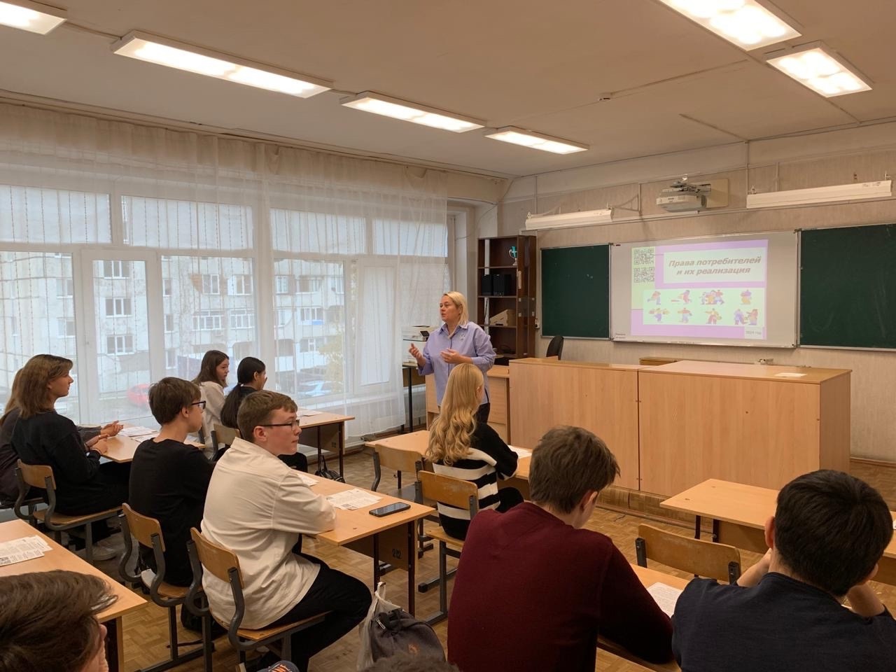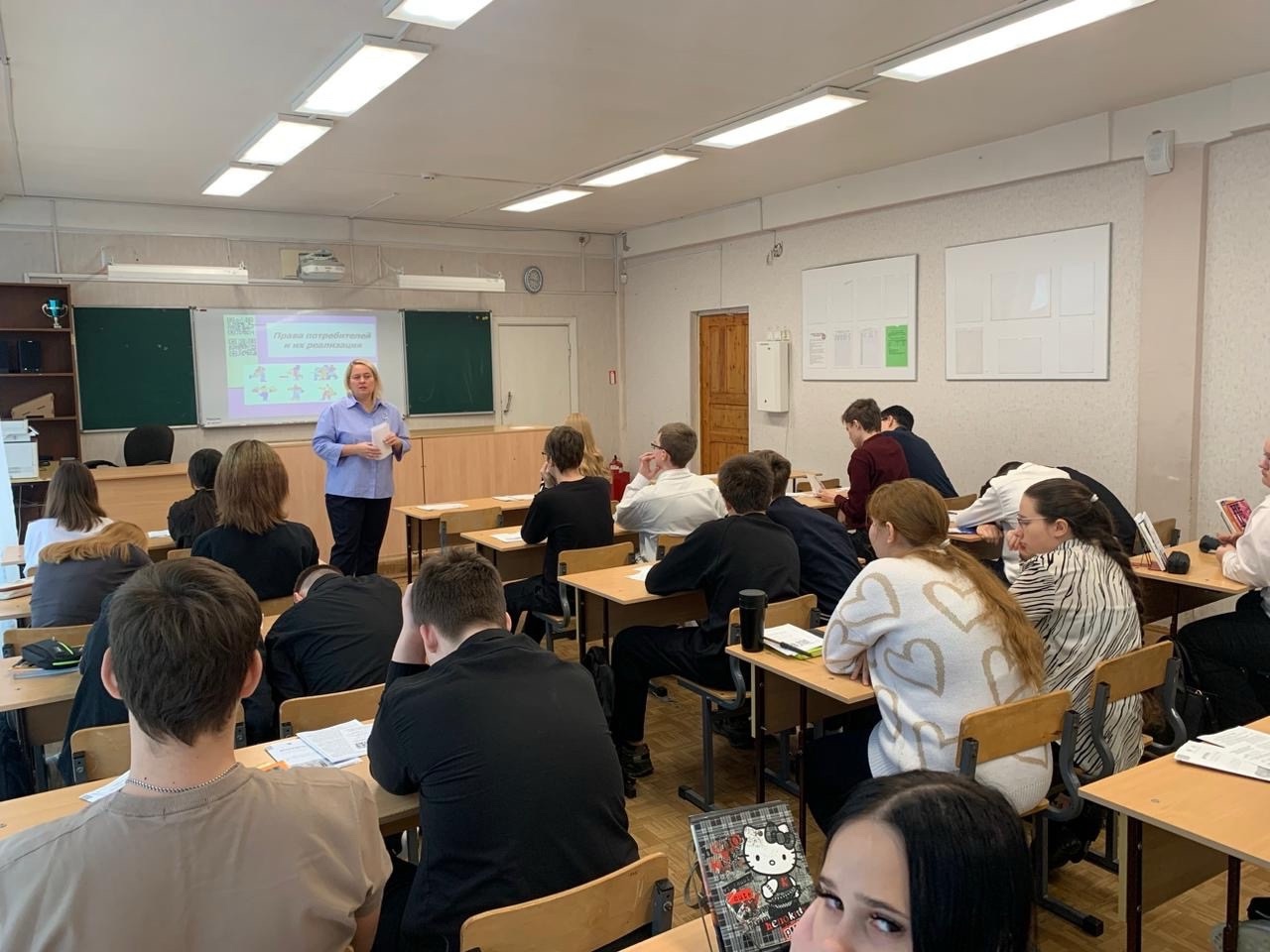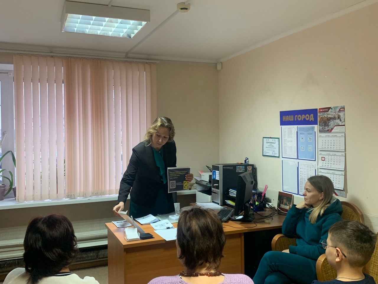 Сотрудники управления потребительского рынка и защиты прав потребителей провели просветительские мероприятия с жителями города в пункте по работе с населением № 21 МКУ «Наш город» и учениками 9 класса школы № 26.