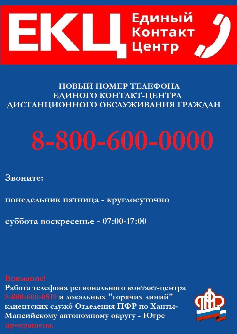С сентября Югра подключилась к Всероссийскому Единому контакт-центру. Теперь по бесплатному номеру 8-800-600-0000 югорчан проконсультируют не только относительно вопросов пенсионного обеспечения, но и в целом по всем услугам, касающимся социальной защиты населения. Это различные выплаты и пособия, субсидии и компенсации, стационарное и нестационарное обслуживание. Получить консультацию операторов контакт-центра жители Югры могут в рабочие дни – круглосуточно, в выходные дни (суббота и воскресенье) с 07:00 до 17:00 (время местное).