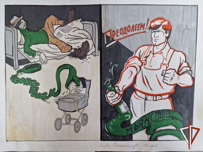 Валерия в своем рисунке изобразила девочку с яблоком – символом здоровья и жизненной силы. А 16-летняя Кира Скимбатор – дочь помощника оперативного дежурного дежурной службы штаба территориального управления Геннадия Скимбатор – рассказала в красках о борьбе с алкоголизмом.