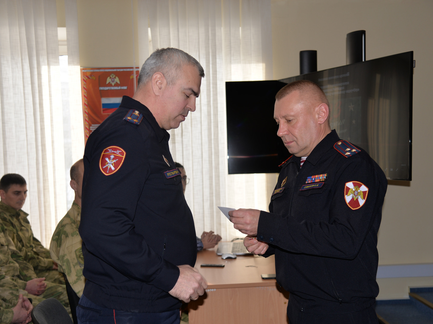 В своей приветственной речи к личному составу начальник Управления Росгвардии по ХМАО – Югре полковник полиции Евгений Симаков отметил: «В истории нашей страны люди, которые оберегают Родину, мирную жизнь и покой граждан, всегда пользовались уважением и почётом. В этот день мы говорим слова искренней благодарности за мужество и самоотверженность ветеранам Великой Отечественной войны и локальных конфликтов, тем, кто сегодня стоит на боевом дежурстве, кто охраняет рубежи нашей Родины и противостоит террористам на дальних подступах».