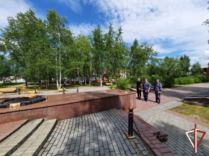 В Ханты-Мансийске военнослужащие ведомства заступили на вахту памяти у Вечного огня мемориала Славы воинам округа, погибшим в годы Великой Отечественной войны, гранитные стелы которого хранят имена почти 3-х с половиной тысяч югорчан, не вернувшихся с войны, среди них есть и фамилии фронтовиков, чьи потомки сегодня служат в подразделениях ведомства.