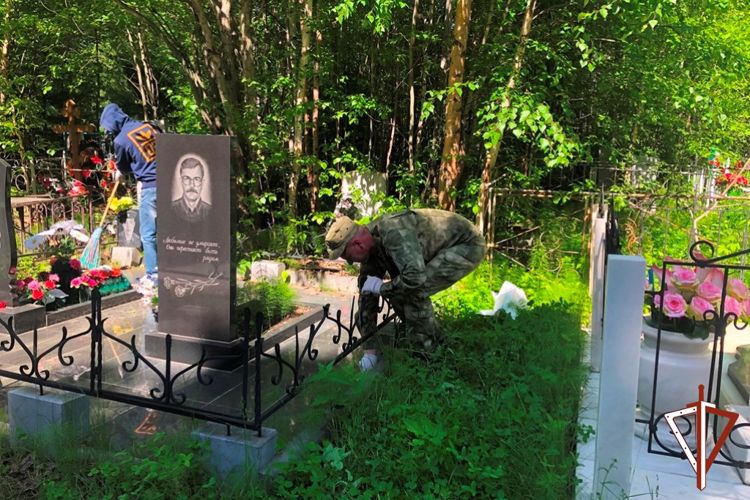 Росгвардейцы совместно с представителями муниципальных и общественных организаций региона, активистов движения «Волонтеры Победы», ветеранов труда приняли участие в очищении мест захоронений защитников Отечества и уборке территории кладбища от мусора.