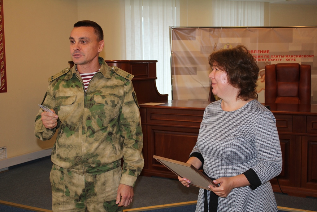 От начальника Управления Росгвардии по ХМАО – Югре полковника полиции Евгения Симакова гостье вручено благодарственное письмо за многолетнее сотрудничество по сохранению исторической памяти о событиях Великой Отечественной войны.