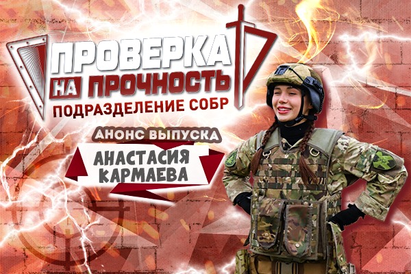 Гостья программы – королева шпагата, чемпионка мира по смешанным боевым искусствам Анастасия Кармаева. На несколько дней она вступит в ряды сотрудников специального отряда быстрого реагирования, проверит свои силы, меткость и выносливость на тренировке по тактико-циклической стрельбе, примет участие в учебном штурме здания, освоит профессию инструктора высотной подготовки.