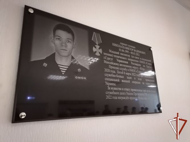 По случаю даты на базе ОМОН «Стерх» Управления Росгвардии по ХМАО – Югре состоялась церемония открытия мемориальной доски в память о сержанте Викторе Николаеве – сотруднике отряда, погибшего 8 марта 2022 года во время выполнения служебного долга в ходе специальной военной операции по защите мирных жителей Донбасса. В памятном мероприятии так же приняли участие представители городской администрации и ветераны службы. Собравшиеся возложили цветы к мемориальной доске и почтили память Виктора Николаева минутой молчания.