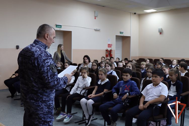 В рамках Всероссийской историко-патриотической акции «Росгвардия. Страницы победы: Сталинград», посвящённой 80-летию победы в Сталинградской битве командир взвода Ханты-Мансийского отдела вневедомственной охраны Управления Росгвардии по ХМАО – Югре капитан полиции Рустам Ризаев провел открытый урок для школьников средней общеобразовательной школы № 3.