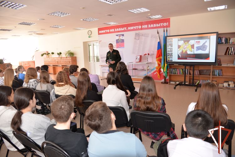 В г. Ханты-Мансийске заместитель начальника регионального ведомства по военно-политической работе подполковник Михаил Тремасов встретился со старшеклассниками 4-ой школы, рассказав про беспримерную стойкость, которую показали военнослужащие войск НКВД в тяжелейших сражениях и боях Великой Отечественной войны: в обороне Брестской крепости, Риги, Таллина, Могилева, Ленинграда, Киева, Одессы, Тулы, в Московской и Сталинградской битвах, в битвах на Кавказе и на Курской дуге.