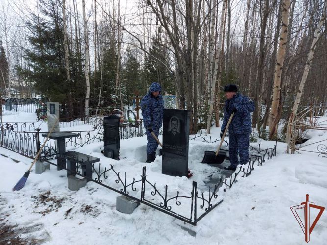 А на «Северном кладбище» в столице Югры сотрудники вневедомственной охраны провели сварочные работы по ремонту входной калитки ограждения и уборку от снега места захоронения и мемориальных плит рядового войск правопорядка кавалера Ордена Мужества Тихон Антона и его отца Владимира Михайловича.