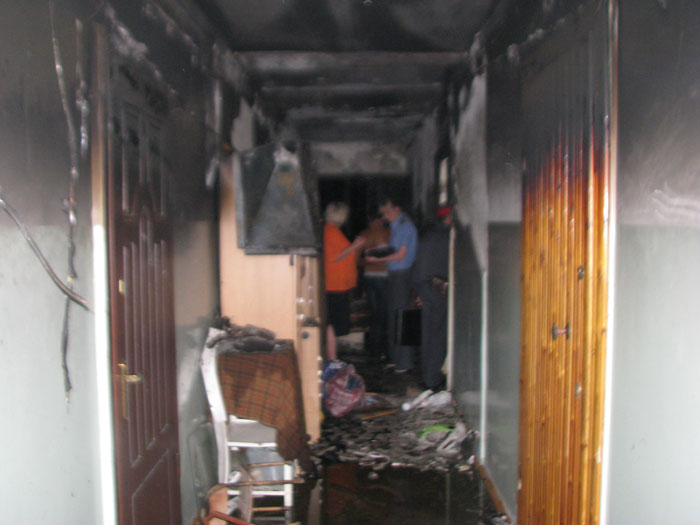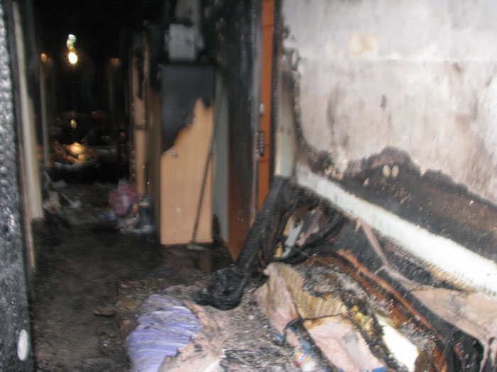 горения коридор 3 этажа дома серьезно пострадал: стены закопчены по всей