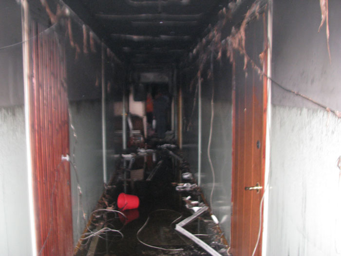 площади, повреждена обшивка входных дверей четырех квартир, электропроводка,