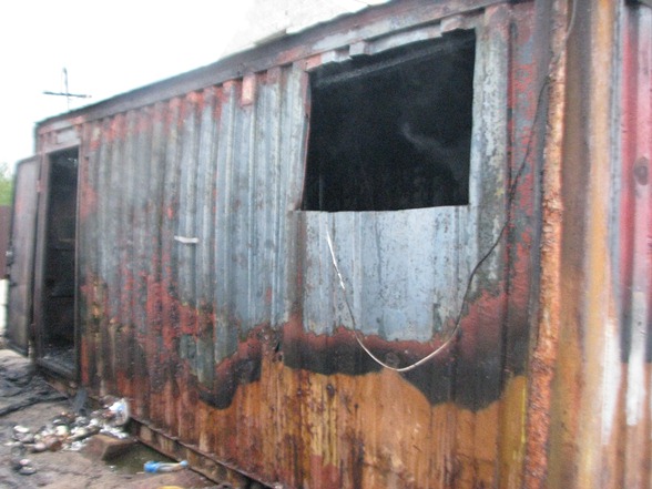 углу контейнера сильно обгоревший труп человека. Одновременно с этим пожар был