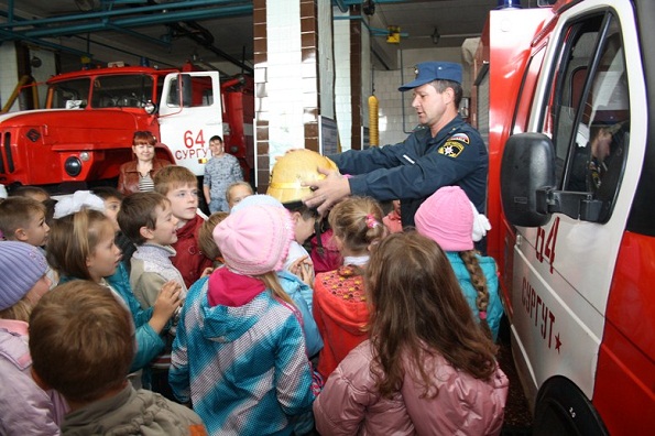 26 сентября в рамках проведения «Месячника гражданской защиты» в 64 пожарной части 1 Отряда федеральной противопожарной службы состоялся День открытых дверей. В гостях у представителей одной из самых опасных профессий побывали учащиеся 1-х классов прогимназии «Сезам». Как рассказал заместитель начальника части Николай Прешкин, огромные железные ворота части будут распахнуты для школьников города практически целую неделю. Подобные экскурсии в пожарные части Сургутского гарнизона пожарной охраны всегда пользуются огромной популярностью у детей. Вот и на этот раз несмотря на сложные термины, всевозможные технические тонкости, обилие новой далеко «недетской» информации ребята были очень увлечены тем, что рассказали и показали им огнеборцы. Экскурсию для сезамовцев провел исполняющий обязанности начальника караула 64 пожарной части Андрей Дмитриенко. В начале встречи Андрей Александрович пригласил маленьких гостей в учебный класс. Немного из истории создания части, немного о режиме работы, боевых дежурствах, о снаряжении, которое используют пожарные в своей работе – вот те основные моменты, на которые обратил внимание школьников Андрей Дмитриенко. После краткого рассказа об особенностях пожарного дела ребят пригласили пройти в гаражный бокс. Вот тут-то все и началось! Вниманию маленьких сургутян представили огромные пожарные автомобили: автолестницу, автоцистерну. Автомобиль быстрого реагирования с разнообразным спасательным оборудованием имел грандиозный успех у детей, поскольку многое из того, что в нем находилось, показали и даже дали померить, посмотреть, потрогать. Ребятам показали комплект боевой одежды пожарного, защитные маски, которые разрешили примерить. А рев бензопилы «Партнер», которая также находится на вооружении брандмейстеров, просто поразил первоклашек! Возможности примерить настоящую каску пожарного-спасателя не упустил никто из них, причем как среди мальчиков, так и среди девочек! Особый восторг у детей вызвала возможность сфотографироваться на память на пожарных автомашинах облачившись в защитные маски или каски. Дружное «спасибо» пролилось, как бальзам, на душу и сердце бывалых огнеборцев. Не так часто им приходится видеть на территории части таких благодарных и любознательных гостей! Да и подобные мероприятия открывают прекрасные возможности для того, чтобы подогреть интерес подрастающего поколения к профессии пожарного. Но, пожалуй, самой главной целью, которую ставят перед собой сотрудники Сургутского гарнизона пожарной охраны – профилактика пожаров. Ведь как показывает неумолимая статистика, наибольшее количество пожаров на территории, охраняемой Сургутским гарнизоном пожарной охраны, происходит именно по причине неосторожного обращения с огнем.