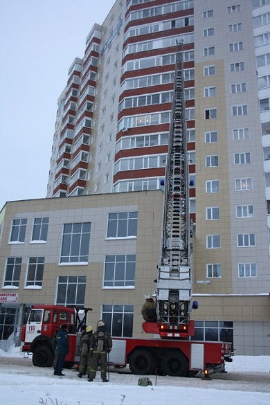 Высотные здания, как грибы после дождя, вырастают один за одним в новых районах города. Сегодня компании-застройщики активно возводят многоэтажные жилые комплексы с прекрасными видами из окон. Но так ли безопасно проживать в таких домах-гигантах? Так или иначе, но данные объекты прибавляют пожарным головной боли и автоматически попадают в список объектов повышенной опасности с массовым пребыванием людей. 29 ноября согласно графику личным составом Сургутского гарнизона пожарной охраны были проведены тренировочные пожарно-тактические учения по тушению условного пожара в частично заселенном жилом 16-этажном доме по адресу ул. Каролинского дом 14/1. По замыслу учений, пожар произошел в одной из квартир на 12 этаже. На балконе квартиры находится человек, который просит о помощи. Данная вводная поступила на телефон 01 центрального пункта пожарной связи Сургутского гарнизона пожарной охраны в 10.08. К месту происшествия были направлены силы и средства Гарнизона по второму, повышенному, номеру вызова. В общей сложности к высотке стянулись 14 единиц техники и 70 огнеборцев. Обстановка, максимально приближенная к условиям реального пожара, сразу же выявила «подводные» камни. Существенным препятствием для установки и выдвижения пятидесятиметровой автолестницы стала нестандартная планировка и конфигурация здания. С наружной стороны «великой китайской стеной» растянулось пристроенное нежилое строение, которое и стало преградой для пожарной автолестницы. Пришлось перегонять ее во двор, где огнеборцев ждал еще один неприятный сюрприз – затрудненный проезд из-за скопления большого количества автотранспорта. И снова установить автолестницу по всем правилам не представилось возможным – для ее правильной установки необходима площадка 10х10 м. Сургутские дворы, в которых еле разъезжаются легковые авто и с трудом передвигаются пешеходы, такой роскоши предоставить пожарным не могут. Надо отдать должное мастерству водителей огромных пожарных автомобилей, которые с филигранной точностью лавируют между припаркованными машинами, как корабли среди айсбергов. Попытка установить автолестницу во дворе увенчалась частичным успехом. Достала она только до одиннадцатого этажа, а могла бы дотянуться и до тринадцатого, если бы не мешали припаркованные возле подъезда легковые автомобили. По словам заместителя начальника Сургутского гарнизона пожарной охраны Василия Сидорова, автомобильные пробки на дорогах и во дворах становятся серьезной проблемой для пожарных. «Зачастую мы попросту не можем нормально подъехать к месту пожара, чтобы установить технику и, не теряя времени, приступить к тушению. Заставленные автотранспортом дворы, так называемые «часы пик» на дорогах забирают у нас и у погорельцев драгоценные минуты. Отсюда и не всегда успешные результаты», - прокомментировал Василий Сидоров. Благо в доме установлена система обнаружения пожара и оповещения людей. Для обнаружения источников горения в квартирах и холлах этажей установлены пожарные дымовые извещатели, также на каждом этаже имеется ручной пожарный извещатель. Оповещение людей о пожаре производится прибором «Маяк 12 КП». Все установленные лучи собраны в прибор управления «Сигнал 2П SMD». Орган управления находится в цокольном помещении электрощитовой и запитывается основным 